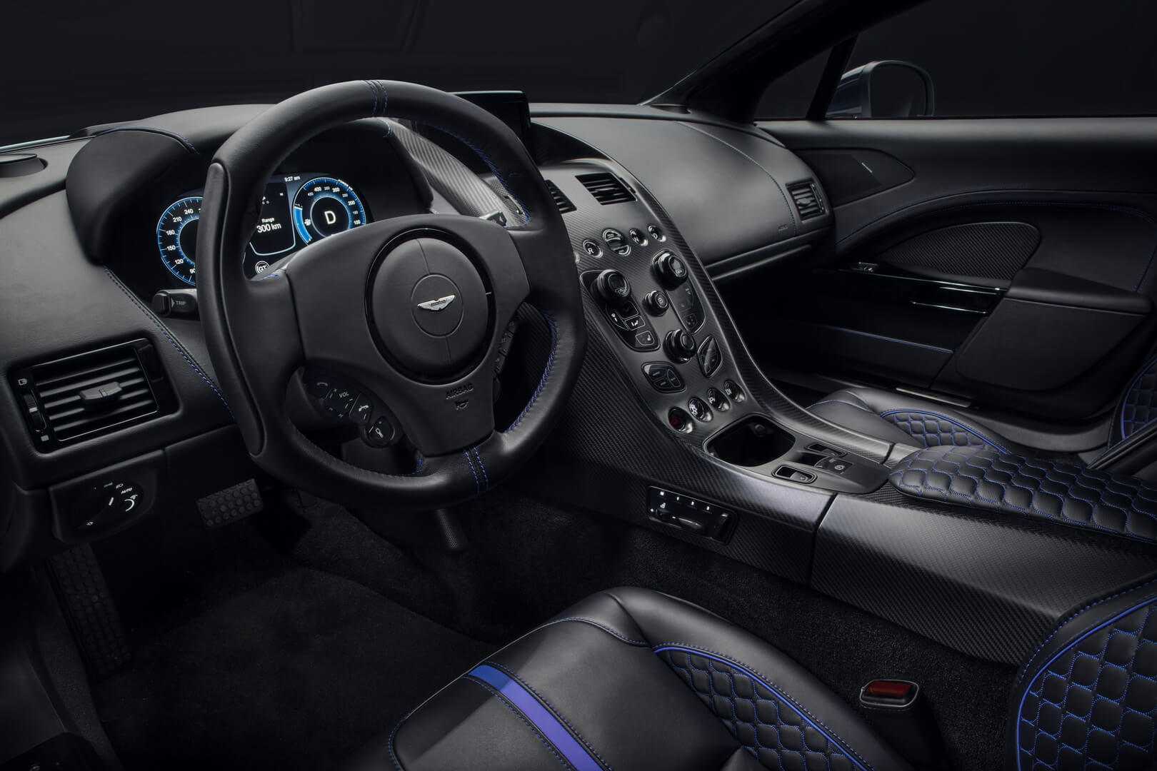 Атмосфера на борту достойная английской, с тонким сочетанием дерева, кожи и алюминия; все ручной работы в мастерской Гайдона. Надпись « Сделано вручную в Англии » на дверном пороге свидетельствует о гордости Aston Martin тем, что он по-прежнему остается одним из немногих производителей, использующих кустарный производственный процесс.