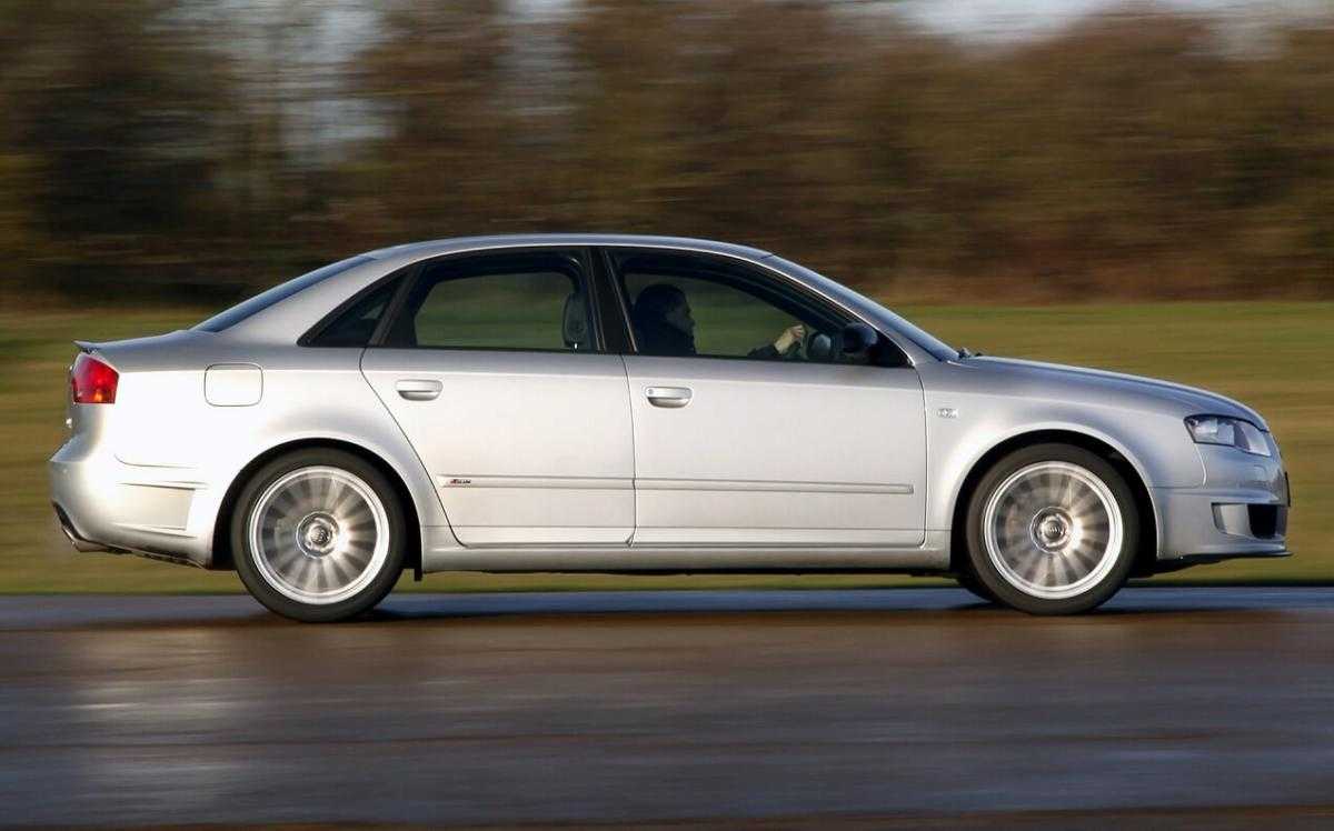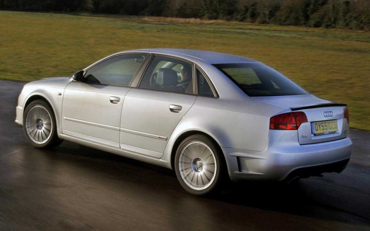 Боковая часть получила немного раздутые арки колес. Еще можно заметить молдинг, не сильно выступающий из-за того, что его окрасили в цвет кузова. Что касается окон Ауди А4 3 поколения, они обладают маленькой хромированной окантовкой. Высота дорожного просвета уже составляла 130 миллиметров. Корма тоже немного поменялась. Фары получили немного другую форму, но все также имеют галогенную начинку.