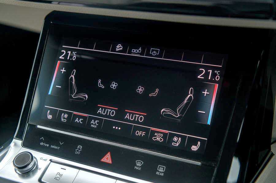 Спереди мягкие кресла с легкой боковой поддержкой на манер S-Line. Естественно сиденья e-tron регулируются электрически, есть подогрев и опциональная вентиляция с массажем. С пространством проблем не возникает, особенно сзади. Сзади сплошной диван с собственными портами USB, климатом и откидным подлокотником. Даже при росте 180 см коленям до спинки далеко.