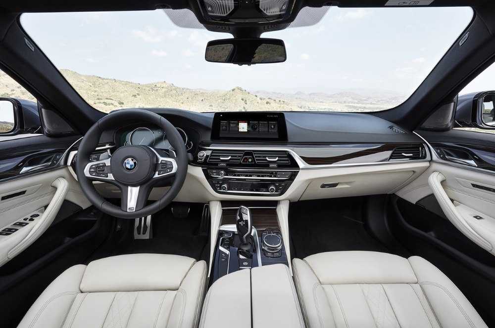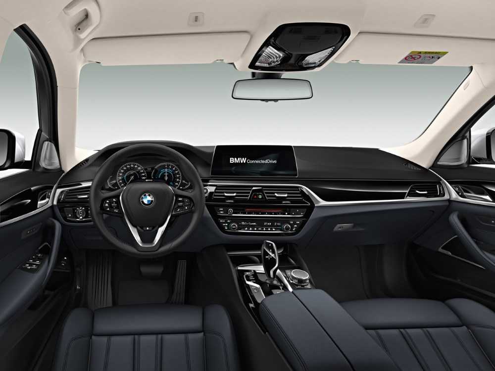 Оборудование – ещё один козырь седана БМВ 5 серии 2017-2018 года. Автомобиль получил трехспицевый многофункциональный руль, приборный щиток в строгом стиле, проекционный экран, двухзонный климат-контроль (опционально доступен и четырехзонный), светодиодную подсветку салона. Покупатели смогут выбирать между разными вариантами развлекательно-мультимедийной системы. Самая богатая версия имеет голосовое и жестовое управление, дисплей диагональю 12,25 дюйма, навигатор, LTE-связь и функцию обзора на 360 градусов.