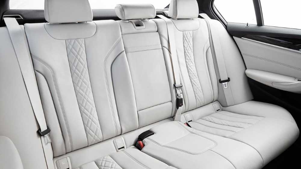 Объем багажника седана BMW 5-Series в новом кузове составляет 530 л. Заднюю спинку сделали раздельной, поэтому данный показатель можно увеличить.