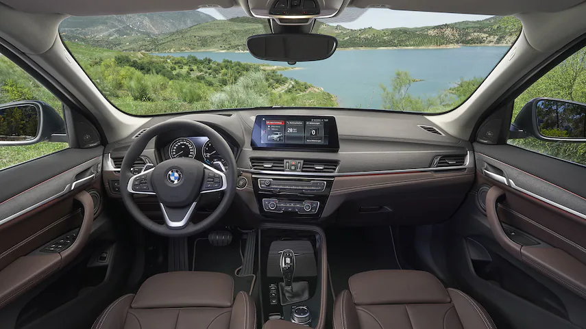 Обновленное II поколение BMW X1 стало оснащаться вынесенным на верхнюю часть панели приборов дисплеем мультимедийного центра. Базовый цветной экран имеет диагональ 6,5″, доступны варианты с сенсорными дисплеями размером 8,8 или 10,25″. Предусмотрена функция голосового управления магнитолой. Климатическая установка с раздельной настройкой температуры по зонам оснащена фильтром для улавливания пыльцы.
