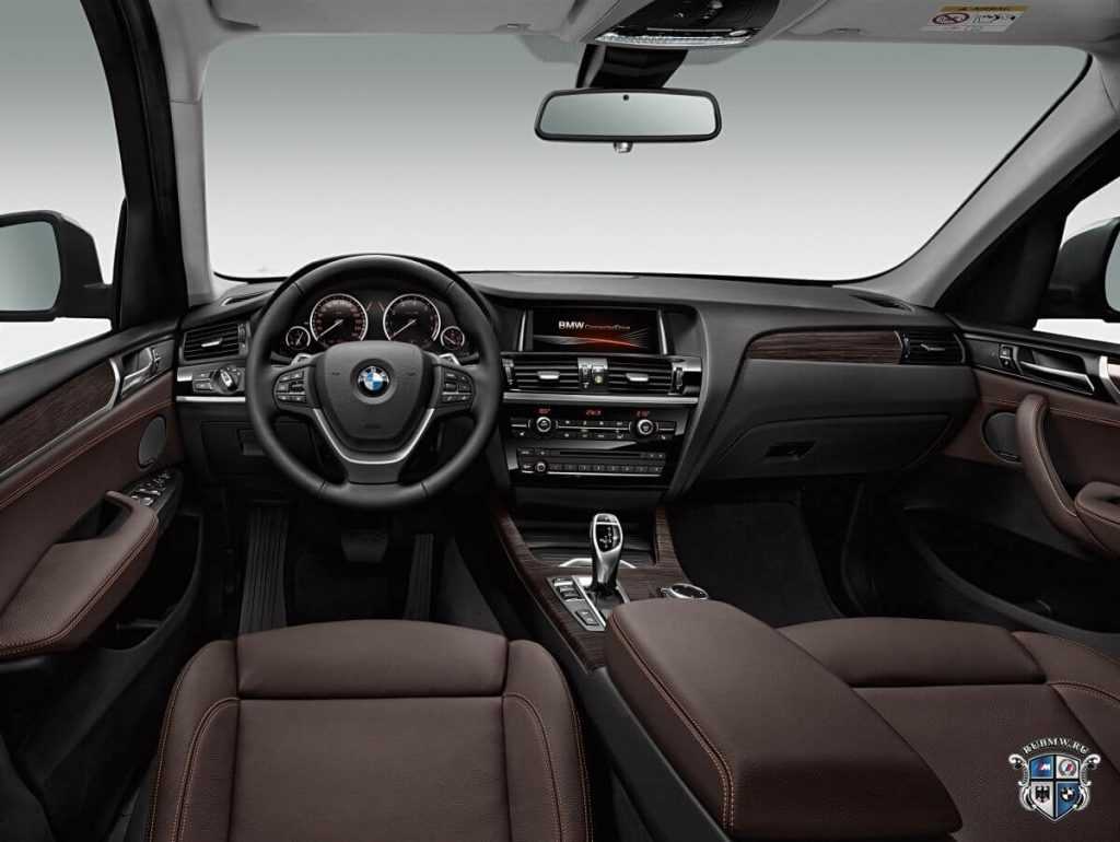 Внутреннее убранство BMW X3 F25 неузнаваемо по сравнению с предыдущей моделью авто. Предшественник нередко критиковали за тесноту в салоне, а также малую ёмкость багажного отсека. Производители учли отзывы владельцев и исправили недостатки. Несмотря на продольное расположение мотора, которое, по идее, должно немного сократить пространство в салоне BMW X3 F25, пассажиры чувствуют себя вполне комфортно и уютно внутри BMW X3 F25. Даже высокорослый человек, расположившийся за водителем, не найдёт причин для жалоб, поскольку свободного пространства остаётся целых 73 см. немногие конкуренты могут похвастаться подобным показателем.