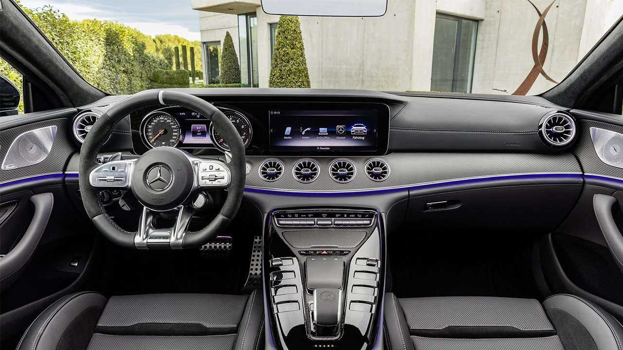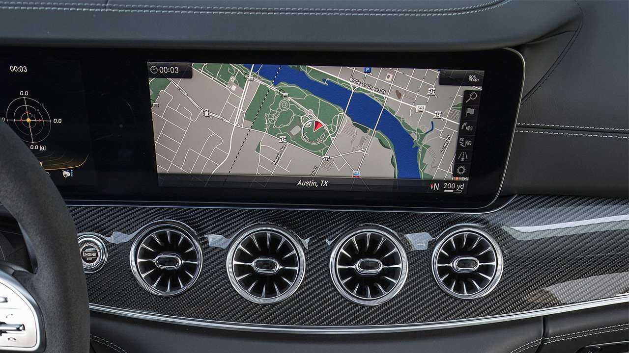 На центральной консоли под рукой водителя Мерседес амг расположен джойстик коробки автомат, тачпад для управления всей электроникой, информацию о состоянии которой можно вывести на большой экран. Вентилируемые АМГ сиденья в форме ковшей с боковой поддержкой, подкачкой поясничного отдела, дополнительной подставкой под колени и активным подголовником, который срабатывает при аварии фиксируя шейный отдел водителя и пассажира.