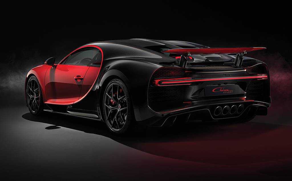Большинство особенностей перешли на дорожную машину «как есть». Двигатель W16 с четырьмя турбокомпрессорами форсирован со стандартных 1500 до 1600 «лошадей». Купе имеет легкие колеса из магниевого сплава и некрашеные внешние панели из углепластика. Новое хвостовое оперение сделало машину длиннее на 25 см: растянутая корма играет роль стабилизатора воздушных потоков. А четыре патрубка выпускной системы выступают за габарит кузова, чтобы горячие выхлопные газы как можно меньше влияли на аэродинамику.