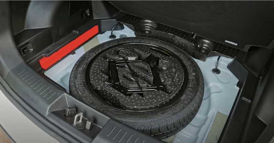 Под фальшпанелью размещается малоразмерная запаска, сверху которой уложен небольшой органайзер с дорожным инструментом, снизу колеса никакой шумоизоляции не предусматривается.