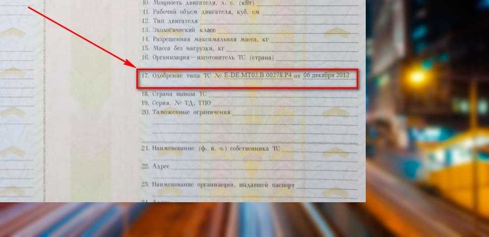 Ищем номер одобрения типа в 17 графе ПТС