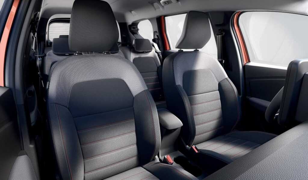 Что касается дизайна интерьера, то передняя панель взята напрямую от новых Логана и Сандеро. Руль уже в базе регулируется в двух плоскостях. Базовые машины лишены полноценной аудиосистемы. Вместо неё таким машинам положены система Media Control, которая включает в себя два динамика, крепления для гаджета, разъем usb и связь по bluetooth. Водитель может установить на смартфон специальное приложение. После чего смартфон можно будет использовать вместо аудиосистемы.
