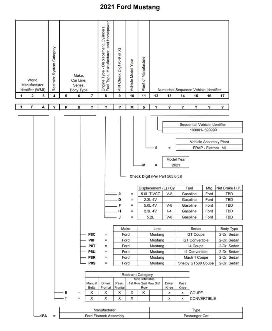 This link will take you to a page that contains the VIN tag information for all years of Mustangs. Previously this information appeared on each Mustang’s year page but consolidating it has significantly reduced page loading times.