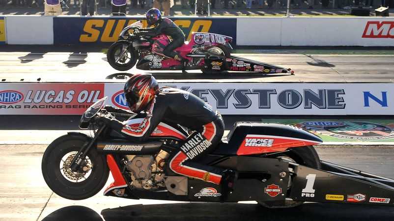 Подкласс – «Pro Stock Bike», в этих гонках участвуют мотоциклы — 2-колесные дрэгстеры.