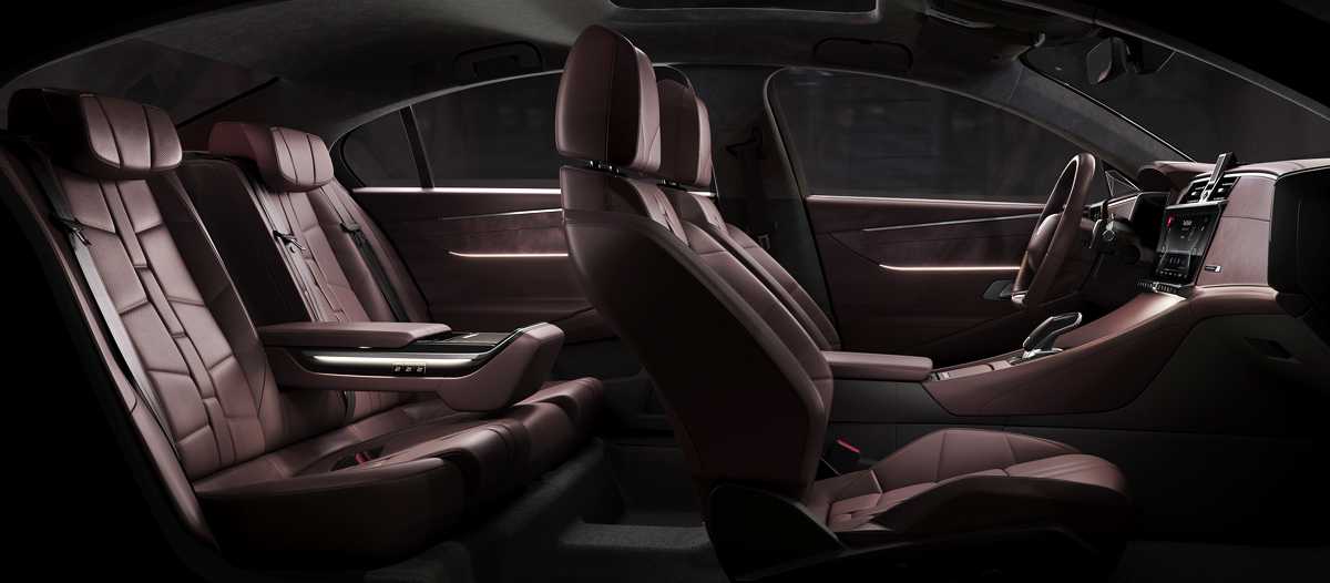 Впечатляющая отделка перекликается с самым топовым оборудованием. Аналогично модели DS 9 Crossback, новый седан уже в базовом исполнении укомплектован двумя информационными экранами, о которых говорилось выше. Так, «мультимедийка» получила 12-дюймовый дисплей, а полностью электронная «приборка» — экран на 7 дюймов. В состав оснащения также входит климат-контроль (трехзонный), светодиодная подсветка ниш интерьера (8 цветов), мощная акустика от Focal Electra, рассчитанная на 14 динамиков. Как для первого, так и второго ряда кресел предусматривается функции массажа, вентиляции и подогрева. Более того, переднее сиденье пассажира можно отодвинуть максимально вперед прямо с заднего рядя простым нажатием сенсорной кнопки.