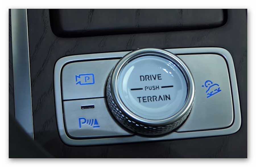 С помощью селектора режимов движения, нажав на кнопку сверху, выбирается характер поведения трансмиссии («Грязь», «Песок», «Снег»), благодаря чему автомобиль может адаптироваться к соответствующим дорожным условиям.