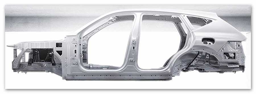 Монолитный кузов машины, представленный как монокок, изготовлен из стали, но присутствуют кузовные детали, выполненные из алюминия (капот, двери), что позволяет и сохранить жесткость конструкции, и несколько облегчить общий вес транспортного средства.