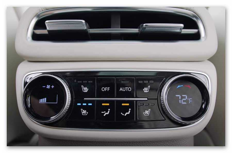 Также модель GV80 оснащается трехзонным климат-контролем: две шайбы управления расположены на центральной консоли спереди, две – сзади.