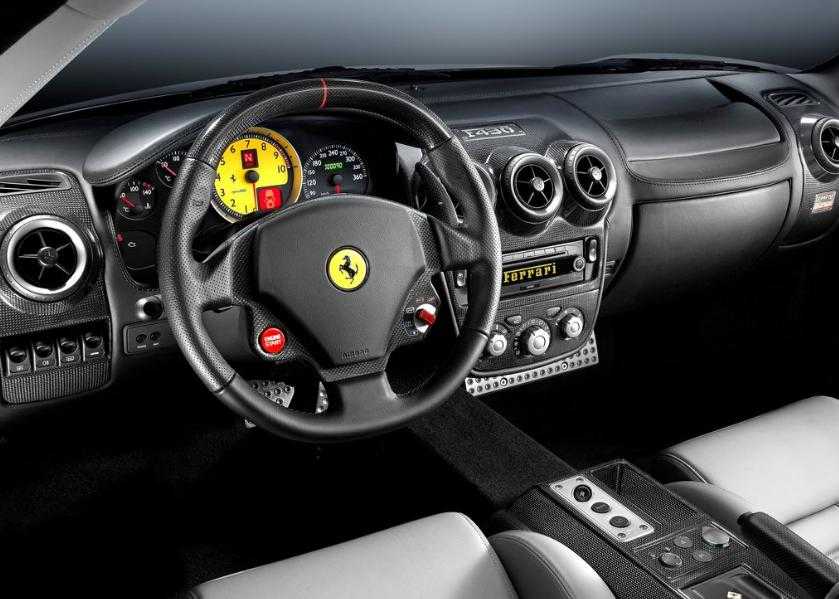 Ferrari никогда не выделялись сногсшибательным салоном. В больше степени они привлекали будущих владельцев своим агрессивным, современным и стильным внешним видом, а также технологичным оснащением транспортного средства. Крепко удерживать тело водителя и пассажира призваны удобные кресла спортивного типа, выделяющиеся четкой боковой поддержкой.