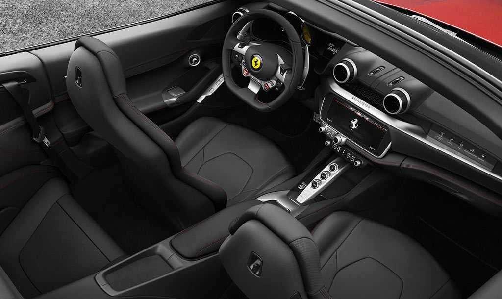 Внутри автомобиля мы видим компоновку с двумя передними и двумя задними креслами. Если в «Калифорнии» мы видели фактически пару мест (на втором ряде сидеть взрослому человеку невозможно), то теперь итальянцы решили увеличить простор. В реальности мы видим незначительную прибавку в 3-4 сантиметра, но это уже позволяет разместиться, хоть и без особого комфорта.