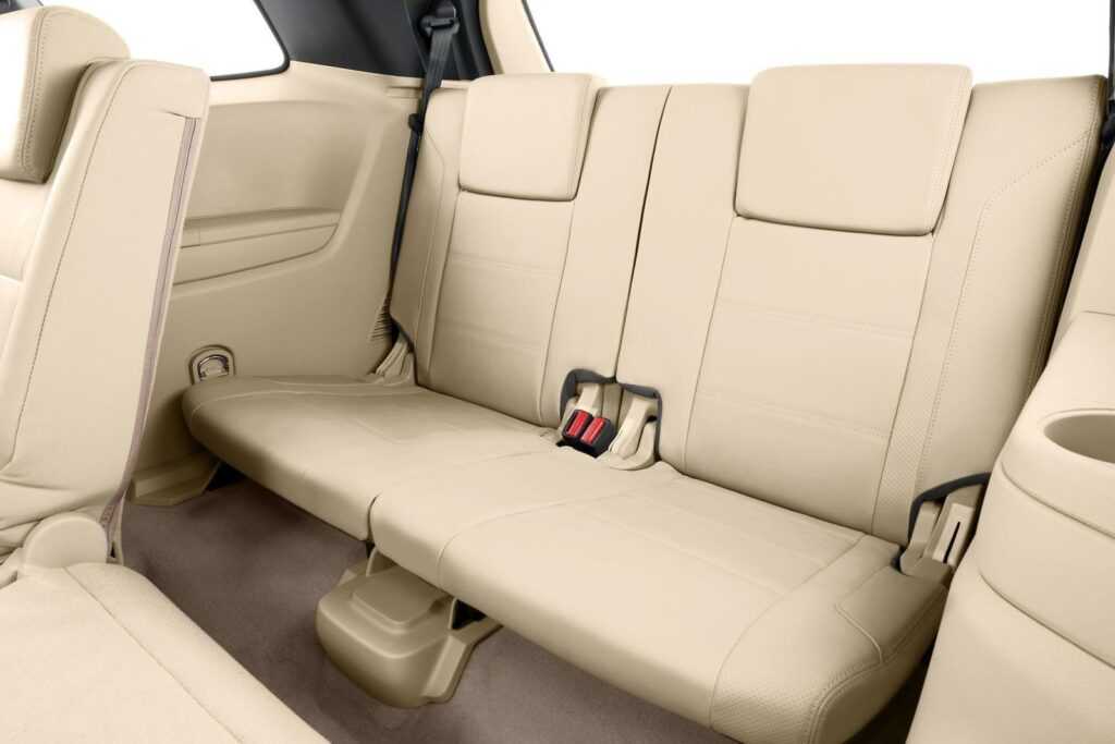 Вид нового внедорожника изнутри (фото ниже) радует не только отделкой кресел и обилием хромированных деталей, но и объёмом свободного пространства: в зависимости от выбранной покупателем комплектации в салоне могут поместиться до 7 человек, включая водителя.