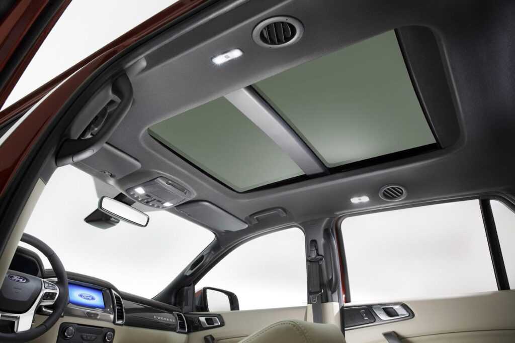 В салоне 2021 Форд Эверест получит более мягкие на ощупь поверхности и новую цветовую схему черного дерева. Как и раньше, Эверест будет доступен с двухрядной и трехрядной конфигурацией сидений. Первый и второй ряды сидений очень просторны и удобны и обеспечивают хорошую поддержку. С другой стороны, третий ряд немного плотный, и он наиболее подходит для детей. Грузовое пространство также хорошо и может быть увеличено путем складывания третьего ряда.