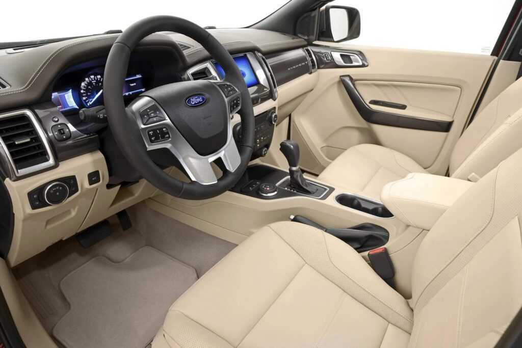 При появлении Ford Everest 2020 в России автолюбителей сможет порадовать комфортабельный и достаточно просторный салон внедорожника, способный разместить семерых человек. При этом не только водитель с передним пассажиром себя чувствовать будут уютно и вольготно, но и расположившиеся на задних рядах сидений люди, которые также будут окружены повсеместным комфортом. Сиденья задних рядов, при возникновении такой необходимости, могут быть сложены, в результате чего получится сформировать просто огромный грузовой отсек с наличием полностью ровного пола и возможности загрузки до 2010 литров багажа.
