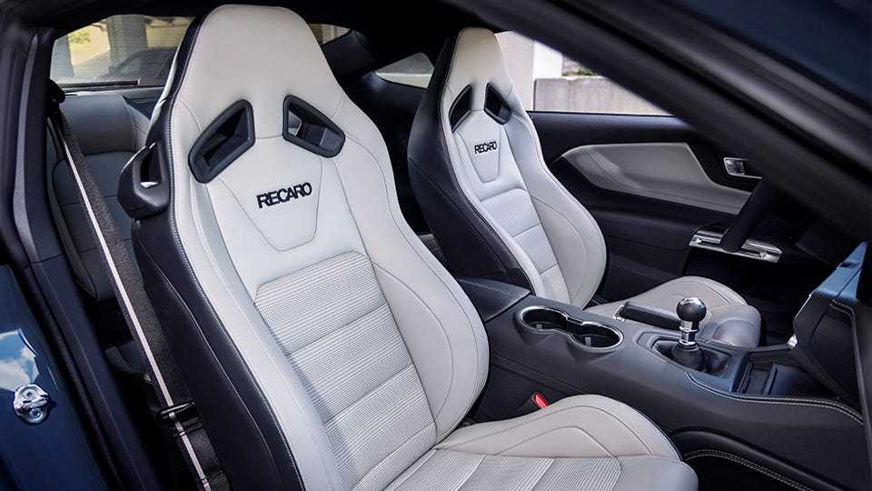 Интерьер Мустанга претерпел значительные изменения. Первое, что бросается в глаза – единая приборная панель, с которой убрали козырьки и установили два экрана. Приборы показаны на дисплее, диагональ которого составила 12.4 дюйма. Владелец вправе выбирать из нескольких режимов изображения.