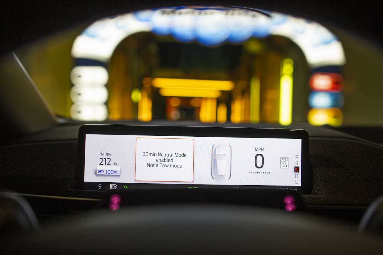 Новое рулевое колесо с плоским дном входит в стандартную комплектацию: его приятно держать в руках. Информационно-развлекательная система на базе Sync4 имеет меньше физических кнопок, потому что большинством функций можно управлять с экрана. Предлагаются 12,4-дюймовый дисплей прямо перед водителем и 13,2-дюймовый центральный экран, расположенный под углом к водителю. Графика четкая и разнообразная, и она меняется в зависимости от выбранного режима вождения.