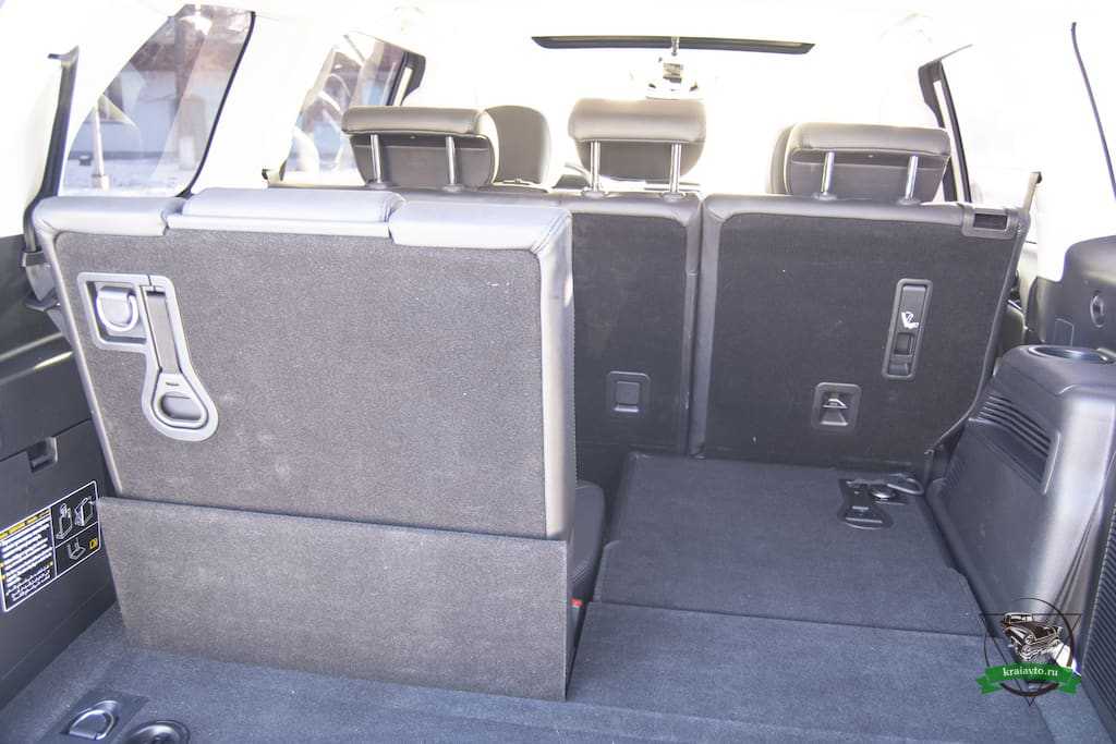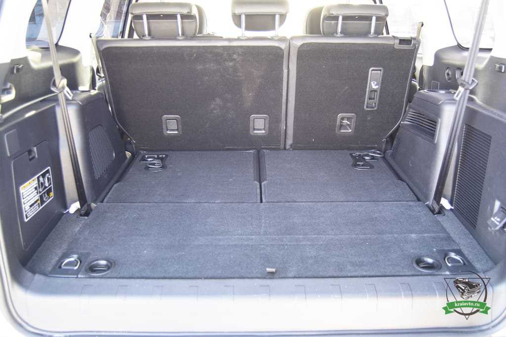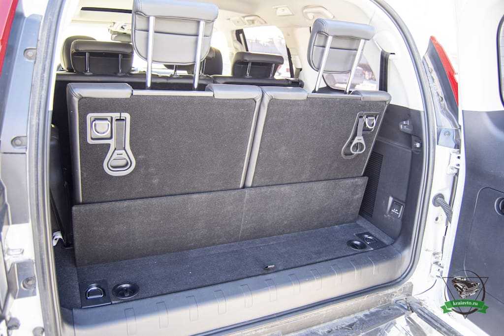 Багажник, при такой компоновке салона, полностью отсутствует. Поместится разве что набор водителя, с аптечкой и тросом. Хотя для этого в Haval H9 предусмотрены специальные места хранения в двери багажника. Очень напоминает компоновку семиместного Lexus GX, тест-драйв которого мы делали несколько месяцев назад. Там так же отсутствовал багажник при разложенном третьем ряде сидений.
