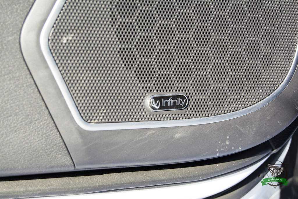 Приятная аудиосистема «Infinity» располагает к прослушиванию музыки на средней громкости. С другими именитыми марками премиальных аудиосистем, она конкурировать не может, однако как штатная система, работает достойно.