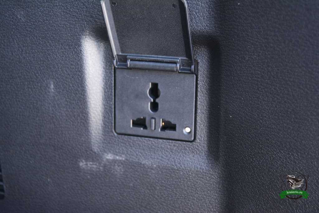 В багажнике так же есть розетка, но выглядит она странно. К сожалению не было возможности проверить ее работоспособность, но её форма показалась мне не совместимой с европейскими вилками. Возможно она просто универсальная.