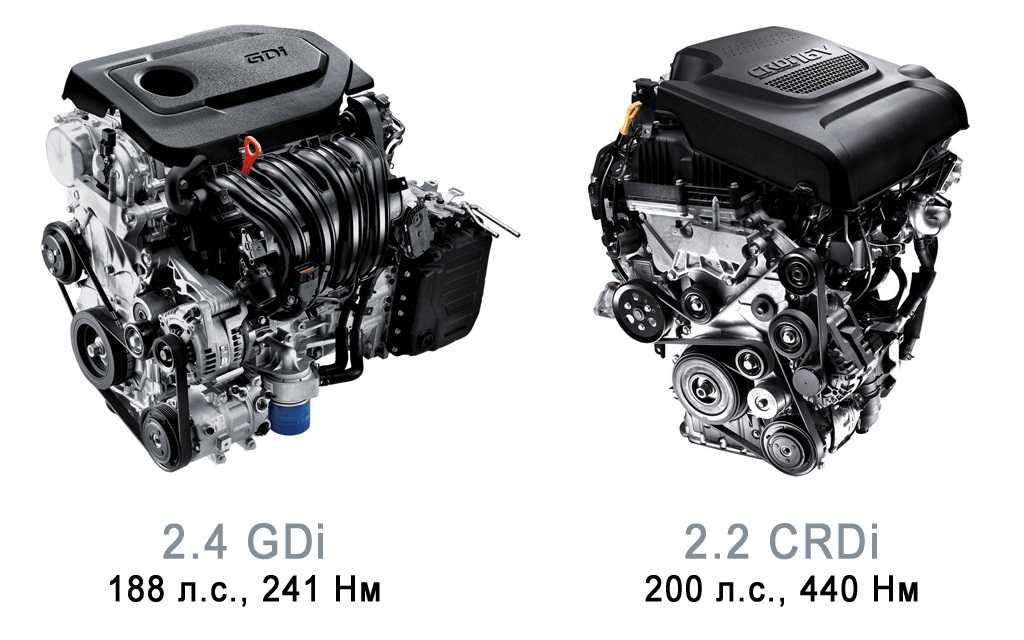 Двигатели 2.4 GDi бензин и 2.2 CRDi дизель