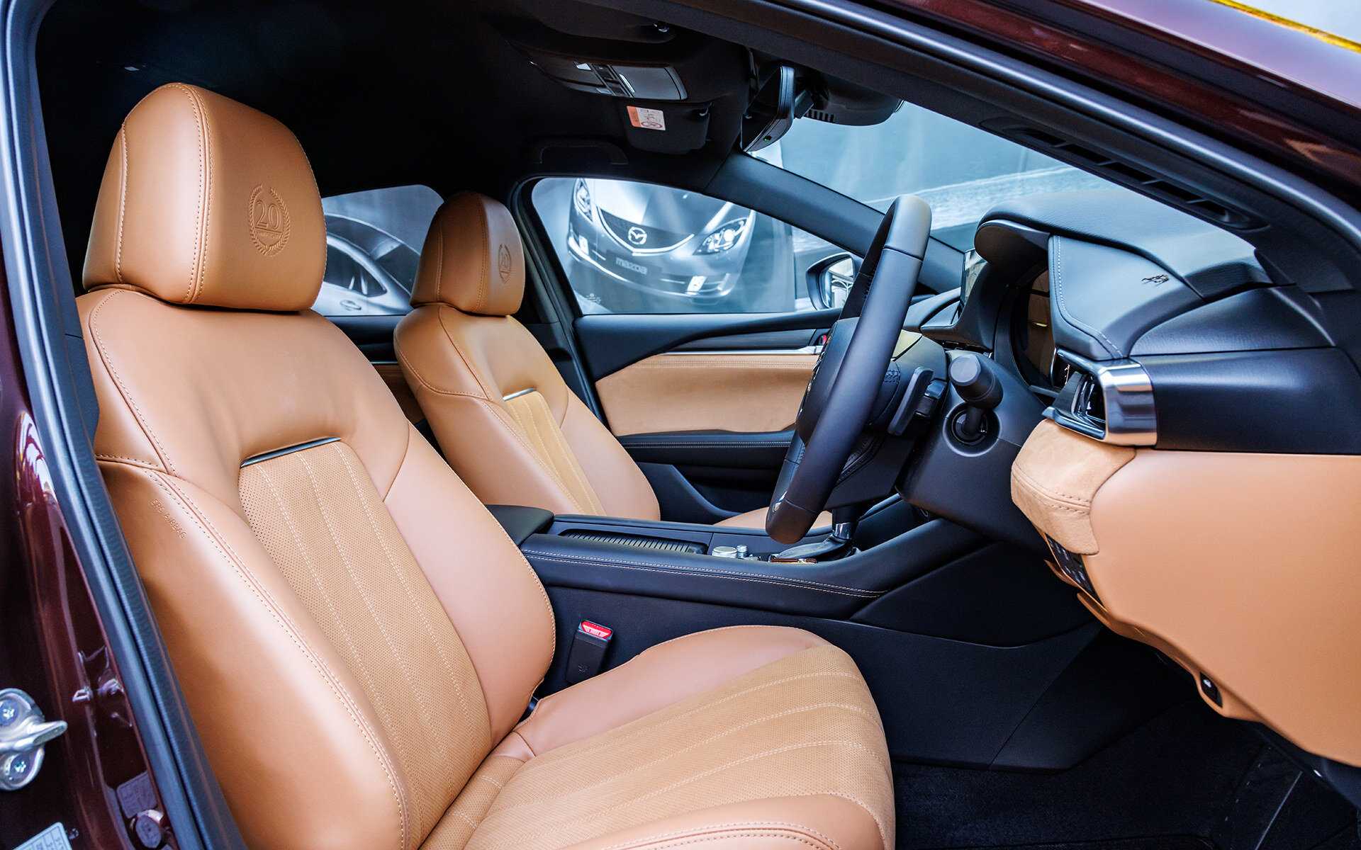 Внутри обновленная Mazda 6 2023 года может порадовать лишь одной обновкой – беспроводной зарядкой. Также впервые на модели появляется отделка натуральной кожей Nappa, но лишь для японского рынка и для самой дорогой версии из доступных (L).