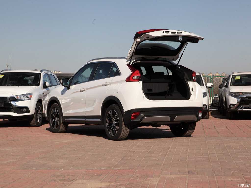 Боковая часть кузова испещрена заметными выштамповками и дополняется пластиковым обвесом. Корма у японского кроссовера из-за пролегающих вдоль дверей линий кажется выше. Сзади у Eclipse Cross размещены антикрыло и спойлер, который выступает над остеклением и соединяет между собой светодиодные фонари. Кормовой багажник закрыт большой металлической пластиной.