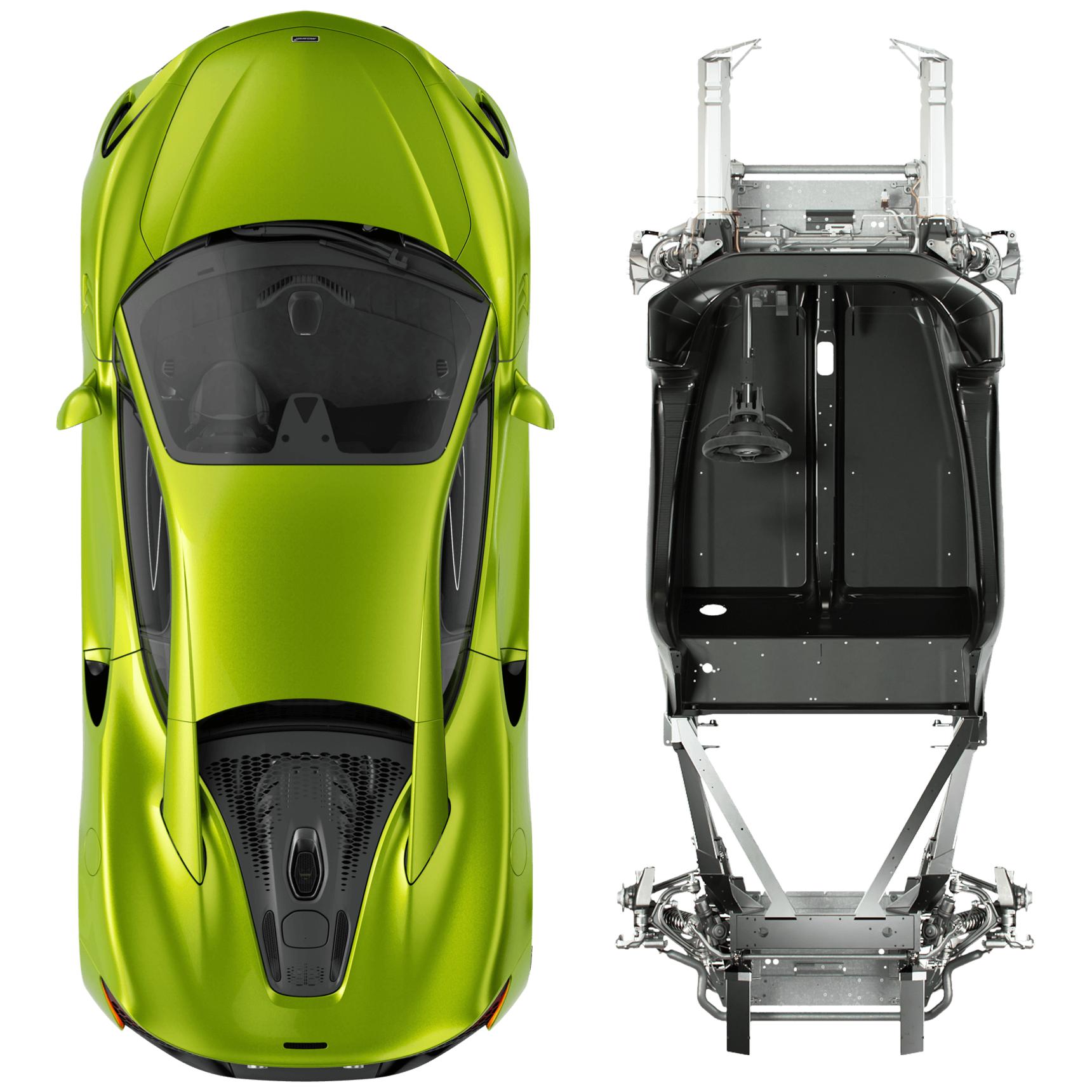Во многом такому низкому весу Artura обязан новой модульной платформе MCLA (McLaren Carbon Fibre Lightweight Architecture), которая включает в себя новый углепластиковый монокок весом 82 кг и алюминиевые подрамники по обеим сторонам автомобиля: