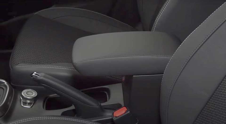 Крышка переднего подлокотника регулируется по длине, под ней, в боксе, размещаются 12-вольтовая розетка.