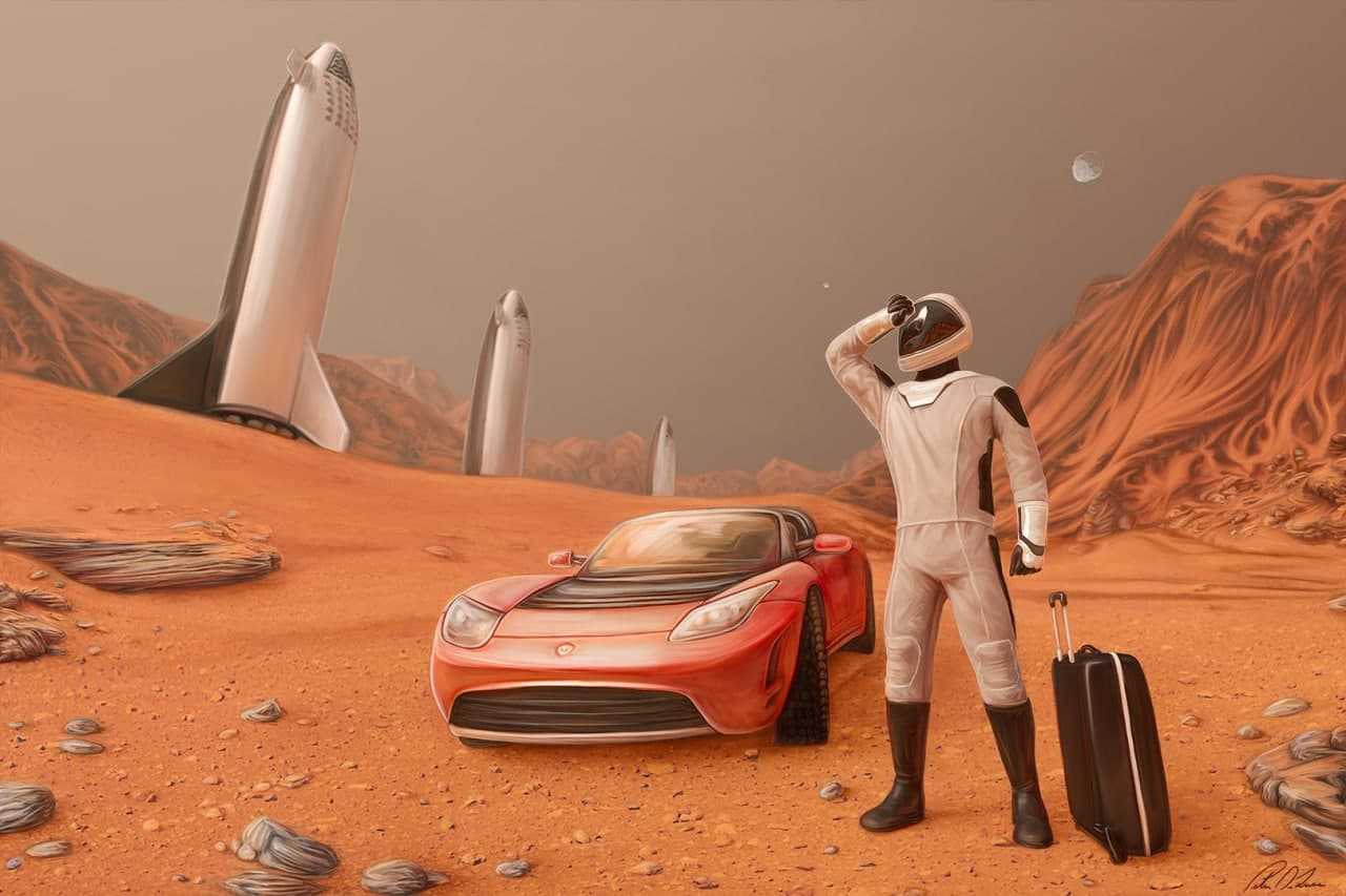 - Продолжение работы над проектом по освоению космоса. Напомним, что первым этапом этого грандиозного проекта стал вывод на околоземную орбиту 6 февраля 2018 года спортивного электрокара Tesla Roadster, который затем направился в открытый космос по направлению к Марсу. Ожидается, что конечного пункта своего путешествия Тесла достигнет в апреле 2035 года.