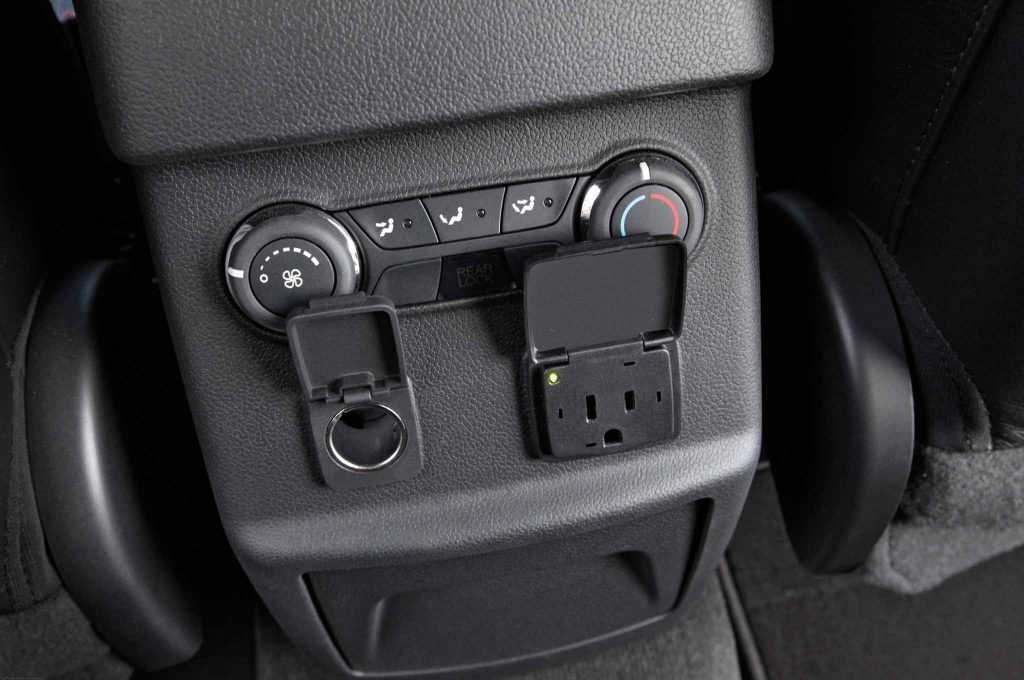 Ну и напоследок. Современный кроссовер обязан иметь сдвижной диван сзади, и в Explorer это есть, но! Двигается только правая часть заднего дивана, а левая, увы, лишь складывается. Раз мы уж остановились сзади, я покажу вам как раз ту розетку, в которую и нельзя подключать ламповый телевизор.