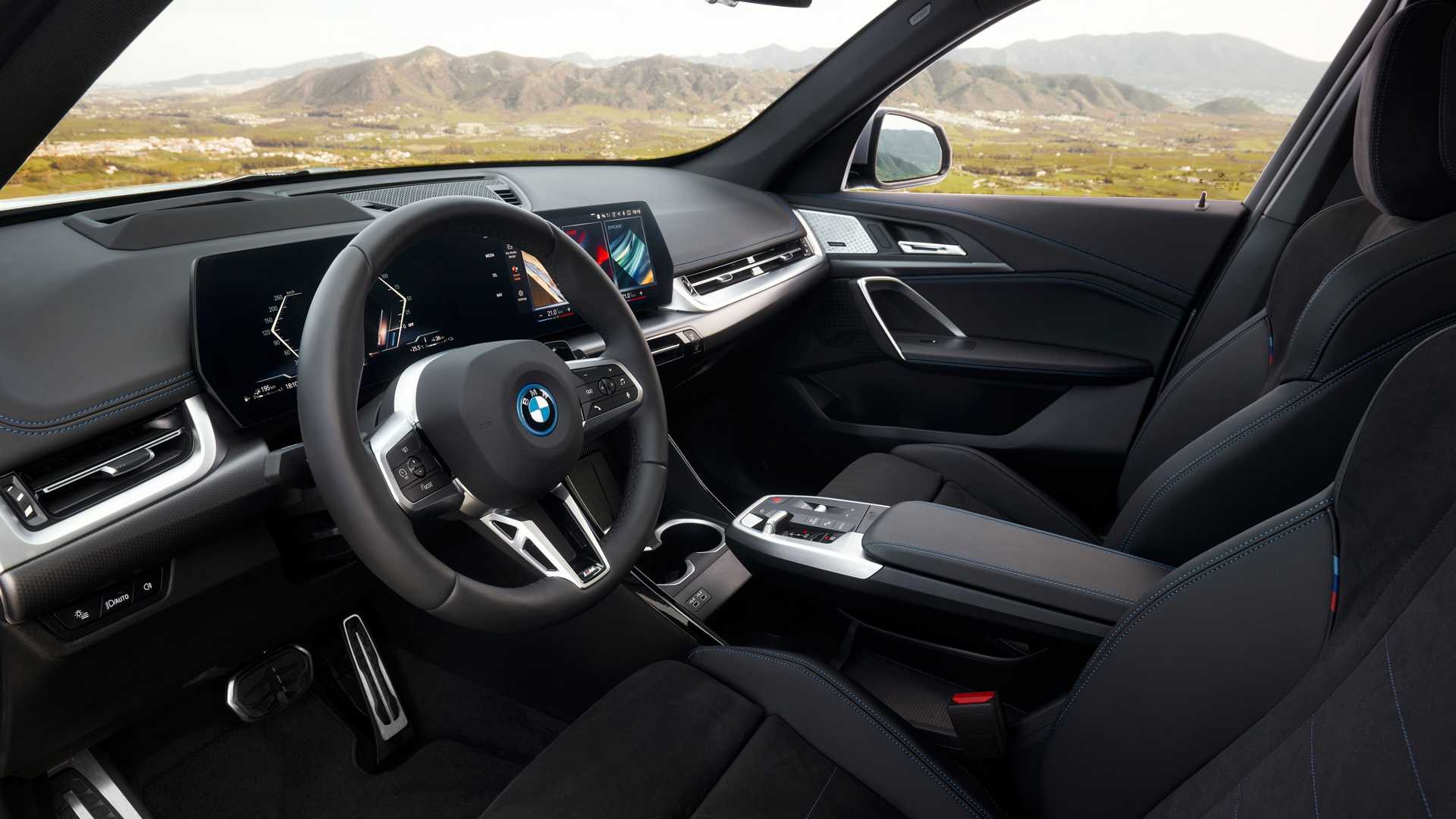 Прибавка пространства в салоне нового BMW X1 незначительна, поскольку вся она пришлась на уровень локтей и плеч. Наиболее основательно переработана передняя консоль: здесь обосновалась пара дисплеев (10.25” и 10.7”), управляемых новейшим информационно-развлекательным программным обеспечением BMW iDrive 8.