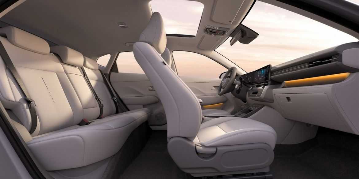 Салон стал выглядеть серьезнее за счет горизонтальных линий. Селектор трансмиссии переехал на рулевую колонку – это еще один пример «электромобильной» эргономики и намек на то, что версии с «механикой» больше не будет. От более крупных и дорогих моделей новой Kona досталась панель из двух 12,3-дюймовых дисплеев цифровой «приборки» и мультимедийной системы. Модель должна стать комфортнее и для задних ездоков за счет увеличенного расстояния до спинок передних кресел и ровного пола.