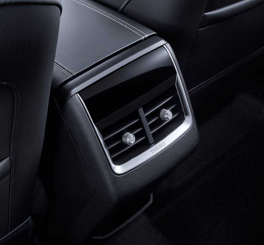 Больше всего поразил 9-дюймовый центральный дисплей мультимедийной системы Тигго 4. Здесь есть система управления жестами как в БМВ. Работает функция конечно намного хуже, тут уж дело либо в цене, либо в еще недостаточном опыте китайских программистов. Дальше все максимально просто – блок климата, аудио-порты и прикуриватель с розеткой.
