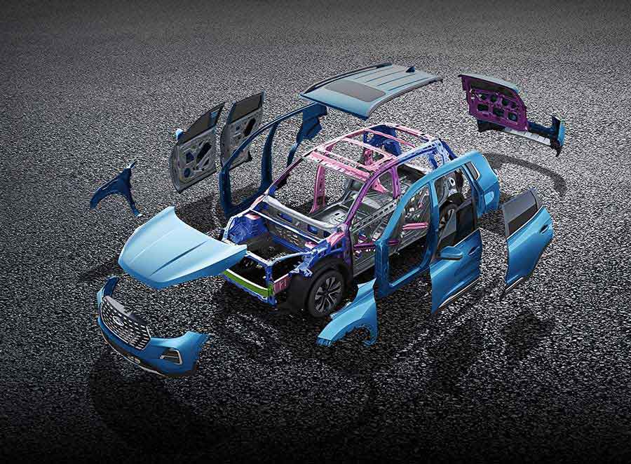 Кузов автомобиля оцинкован (двухстороннее покрытие 0,2 мм), более чем на 60% состоит из высокопрочной стали, имеется 6 горизонтальных и такое же количество вертикальных усилителей.