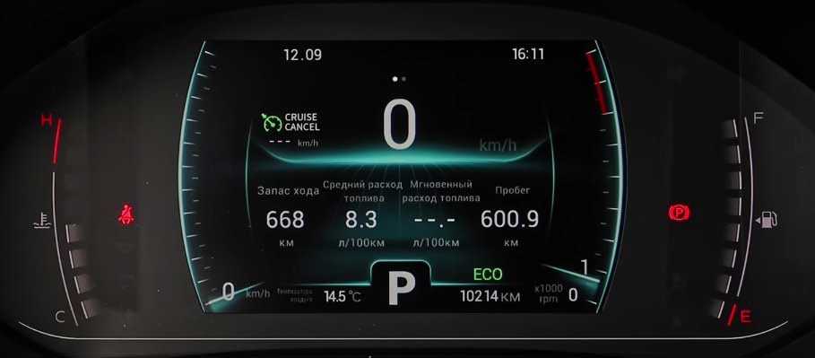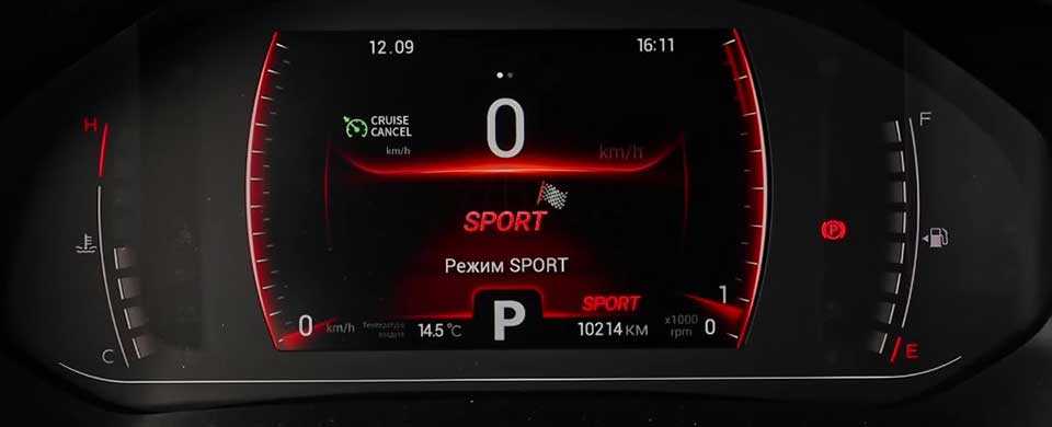 - селектором выбора режимов движения – Eco и Sport. При этом в «Эко» дисплей щитка приборов оформлен в зеленых тонах, в «Спорт» – в красных, изменяется усилие на руле (более тяжелое в «Спорте»).