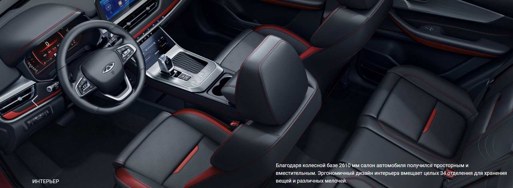 Интерьер автомобиля смотрится стильно и современно, многими элементами напоминая внутреннее пространство кроссовера Tiggo 7 Pro.
