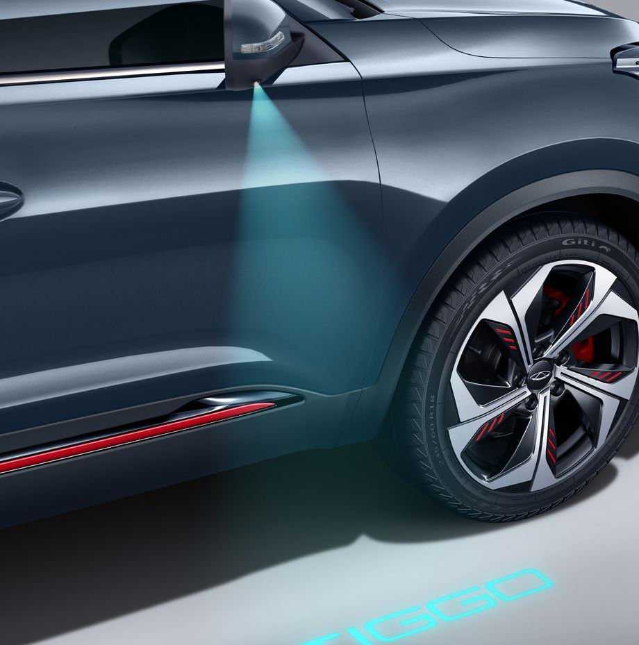 Еще в зеркалах добавлена оригинальная нижняя подсветка, с помощью которой под передними дверями создается проекция из букв TIGGO.