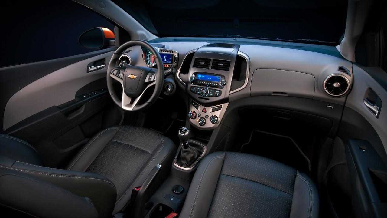 К моделированию передней панели дизайнеры Шевроле Авео Т300 подошли креативно. Внутреннее убранство компакта смотрится интересно и оригинально за счет цифрового спидометра, который интегрирован в дисплей бортового компьютера, а также аналогового большого тахометра с положением стрелки «на шесть часов» в состоянии покоя — они настраивают на драйв, равно как и трехспицевый руль с выраженными приливами.