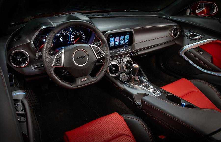Оказавшись внутри Camaro 2019—2020 сразу бросается в глаза обновленная мультимедийная система. Она поставляется с сенсорным экраном на 7 или 8 дюймов в зависимости от комплектации. Уже в базовой комплектации доступна камера заднего вида, изображение с которой выводится на зеркало.
