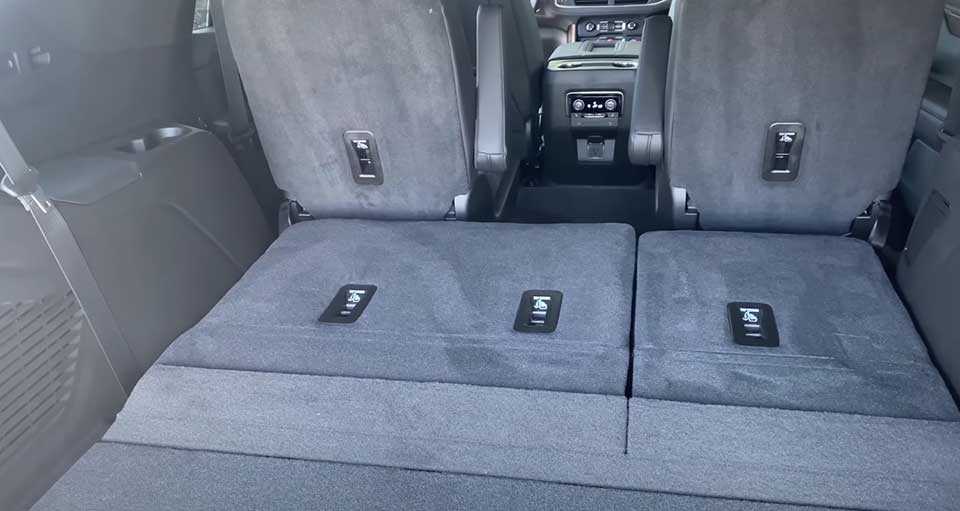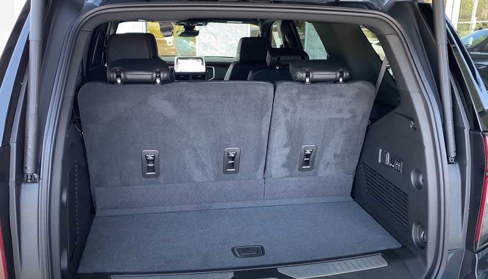 Внутри очень просторно на любом ряду, однако качество самих сидений огорчает, так как они имеют бесформенный профиль. Багажное отделение получило объем 480 л, но можно трансформировать заднее пространство, что предоставит уже 1 162 л. Если убрать 2-й ряд сидений с помощью электрического привода, будет доступно уже 2 269 литров полезного пространства. Под днищем разместили полноразмерное запасное колесо.