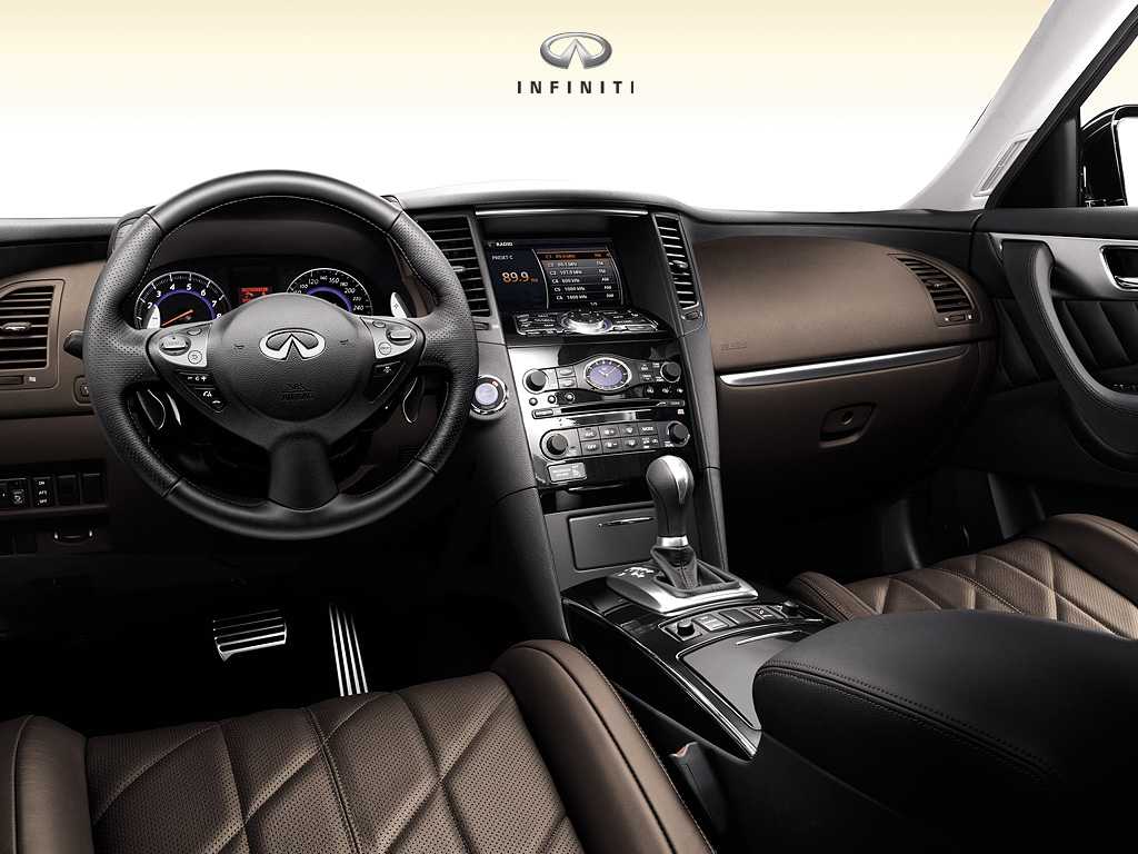 Интерьер автомобиля изменился не столько сильно. Перед нами все тот же элегантный салон, в котором все детали идеально подогнаны друг к другу, а материалы — качественны и приятны на ощупь. Сначала может показаться, что кнопок и рычагов вокруг водительского сидения слишком много, но достаточно проехаться за рулем всего разок — и руки будут сами собой тянуться у нужным элементам управления. По эргономике с Инфинити могут соперничать единицы. Фирменные стрелочные часы на приборной панели на месте: эта эффектная деталь придает оформлению особый шик.