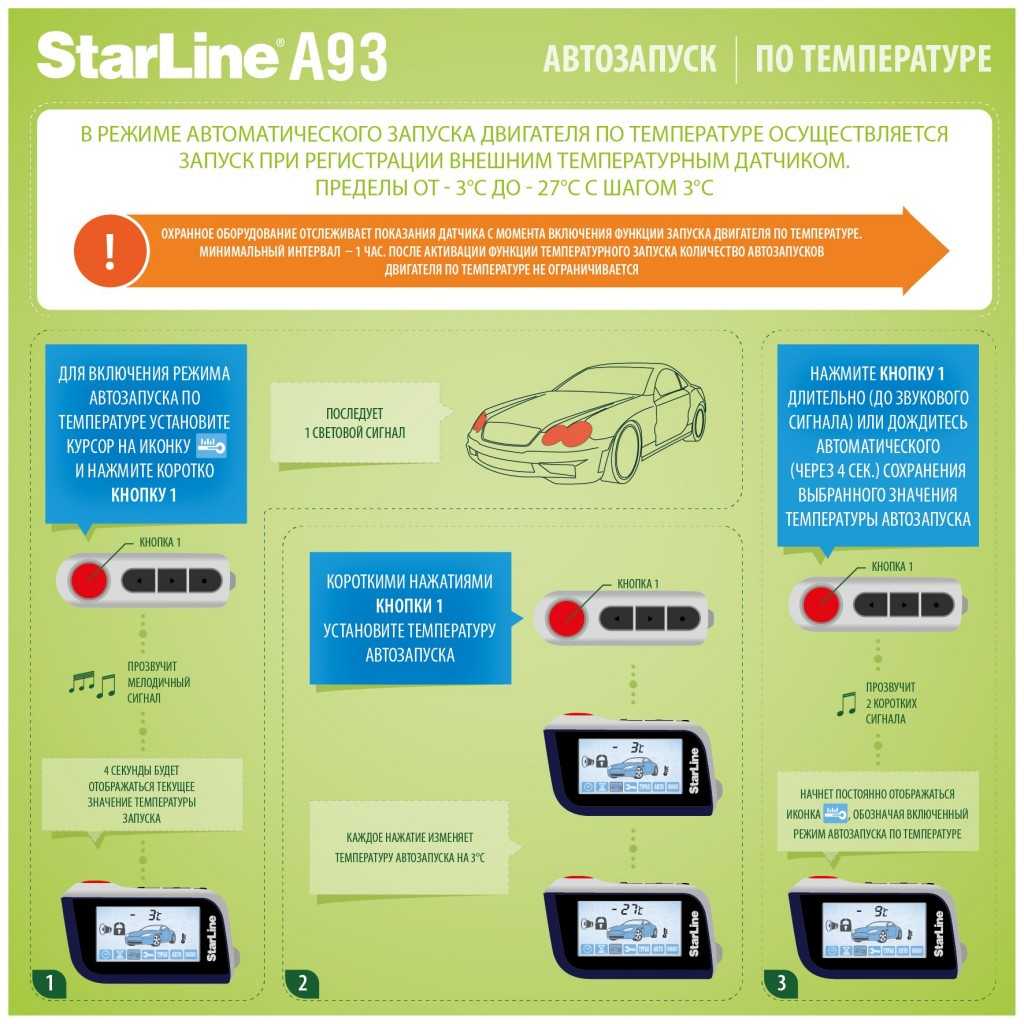 С помощью сигнализации «Старлайн А93» можно запрограммировать следующие параметры: