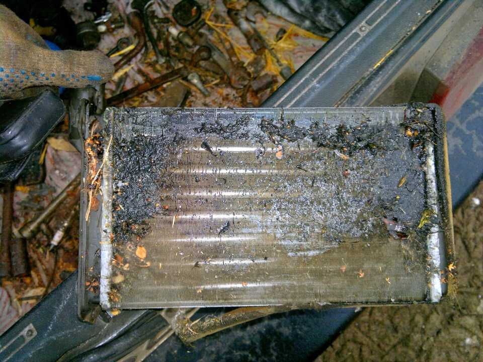 Важно проверять и состояние радиатора. Соты радиатора мелкие, часто радиатор загрязняется снаружи. Также нарушенной может быть и циркуляция ОЖ внутри радиатора по причине скопления отложений
