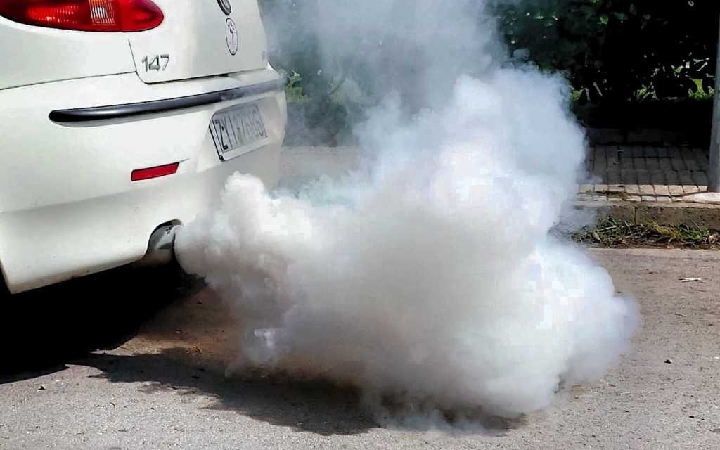 - Белый дым из выхлопной трубы. Особенно это актуально для теплого времени года, поскольку так его заметить проще.
