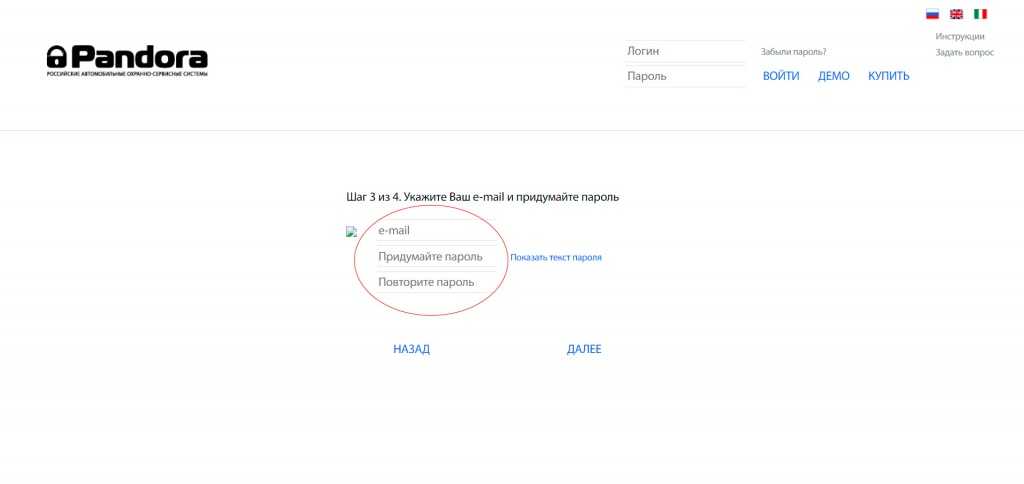 Придумываем пароль: пароль может быть абсолютно любой (например 1234). Повторяем придуманный пароль.